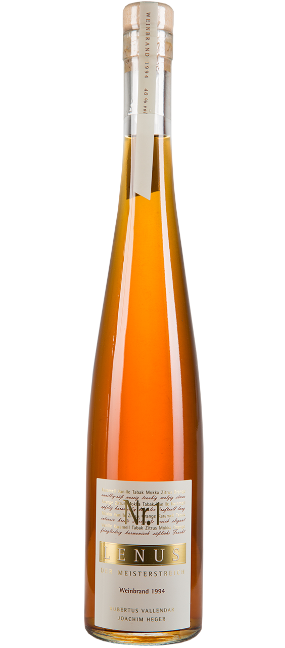 Dieses Edeldestillat ist das Ergebnis einer gemeinsamen Vision des Edelbrenners Hubertus Vallendar und des Winzers Joachim Heger. Der Anspruch einen herausragenden Weinbrand aus erlesenen Burgundern zu erzeugen war der Antrieb für diesen Meisterstreich. Von Joachim Heger im Barrique ausgebaute 1994er Burgunderweine wurden von Hubertus Vallendar sanft und schonend durch ein mehrstufiges Verfahren destilliert. Danach reifte der Brand für weitere 10 Jahre in kleinen Eichenholzfässern. Dadurch entsteht ein Trunk mit vanillig-süßem, nussig-karamelligem Duft, am Gaumen findet man neben den durch den Barriqueausbau zugeführten Röstaromen auch Fruchtkomponenten wie Orange und leicht-würzige Noten wie Zimt. Die lang anhaltende Aromafülle wird beendet mit einem geradezu ambrosialen Abgang.