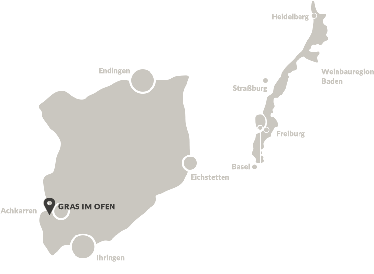 Etwas höher im Gewann Hinter Winklen, in der Nähe eines kleinen Wäldchens, macht der Ihringer Winklerberg einen kleinen Bogen. Dahinter liegen die Parzellen, aus denen die Weine stammen, die den Namen "Gras im Ofen" tragen. Durch die vorgelagerte Bergzunge "Rappenecker" haben die Reben in dieser etwas kühleren, offenen Lage vormittags Schatten. Die volle Sonneneinstrahlung gibt es nachmittags. Die Weine sind geprägt von einer großartigen salzigen Mineralität, dabei enorm elegant und komplex.